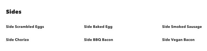 For breakfast, you’ve got 7 different menu options that you’ll find each day; however, keep in mind that sometimes the restaurant could run out of certain items!