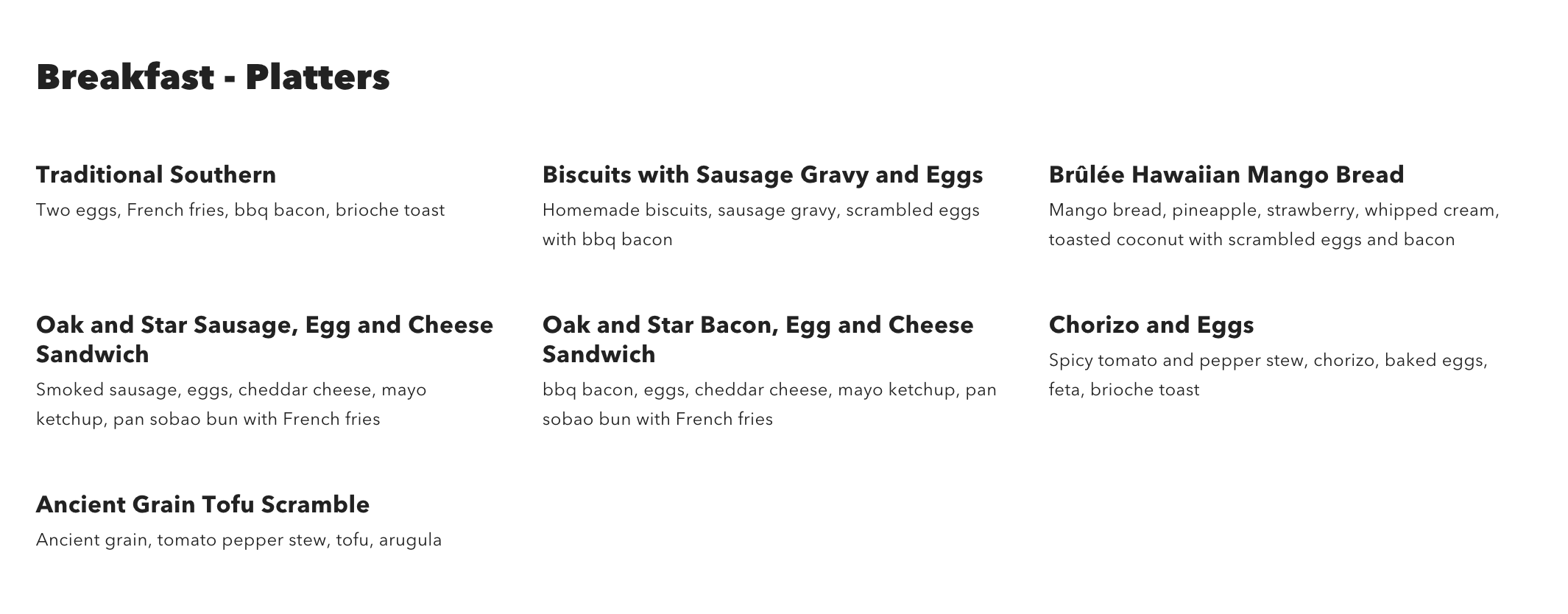 We can’t get enough of this delicious mango bread and the way it brings a unique twist on a classic American breakfast! It’s moist, perfectly toasted, and the fruit on top was so fresh, it all worked so beautifully together. Now, ours didn’t come with toasted coconut as advertised, which is something to keep in mind.