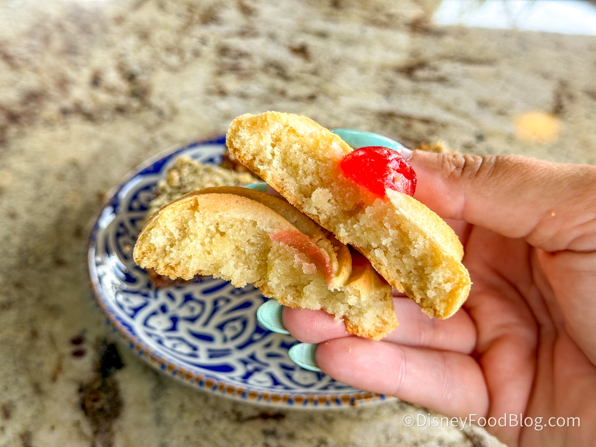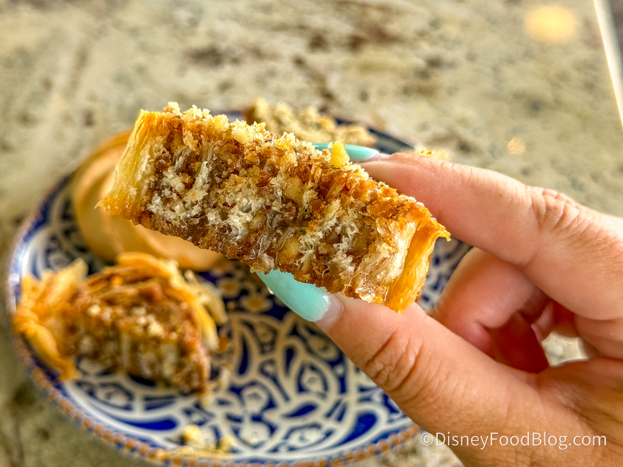 You get a variety of Moroccan pastries to try. The cookie might look tough, but it was SO soft. It’s a little chewy and sticks to the top of your mouth. We tasted a deep, warm, spiced flavor with a cherry middle that brought in some tartness.