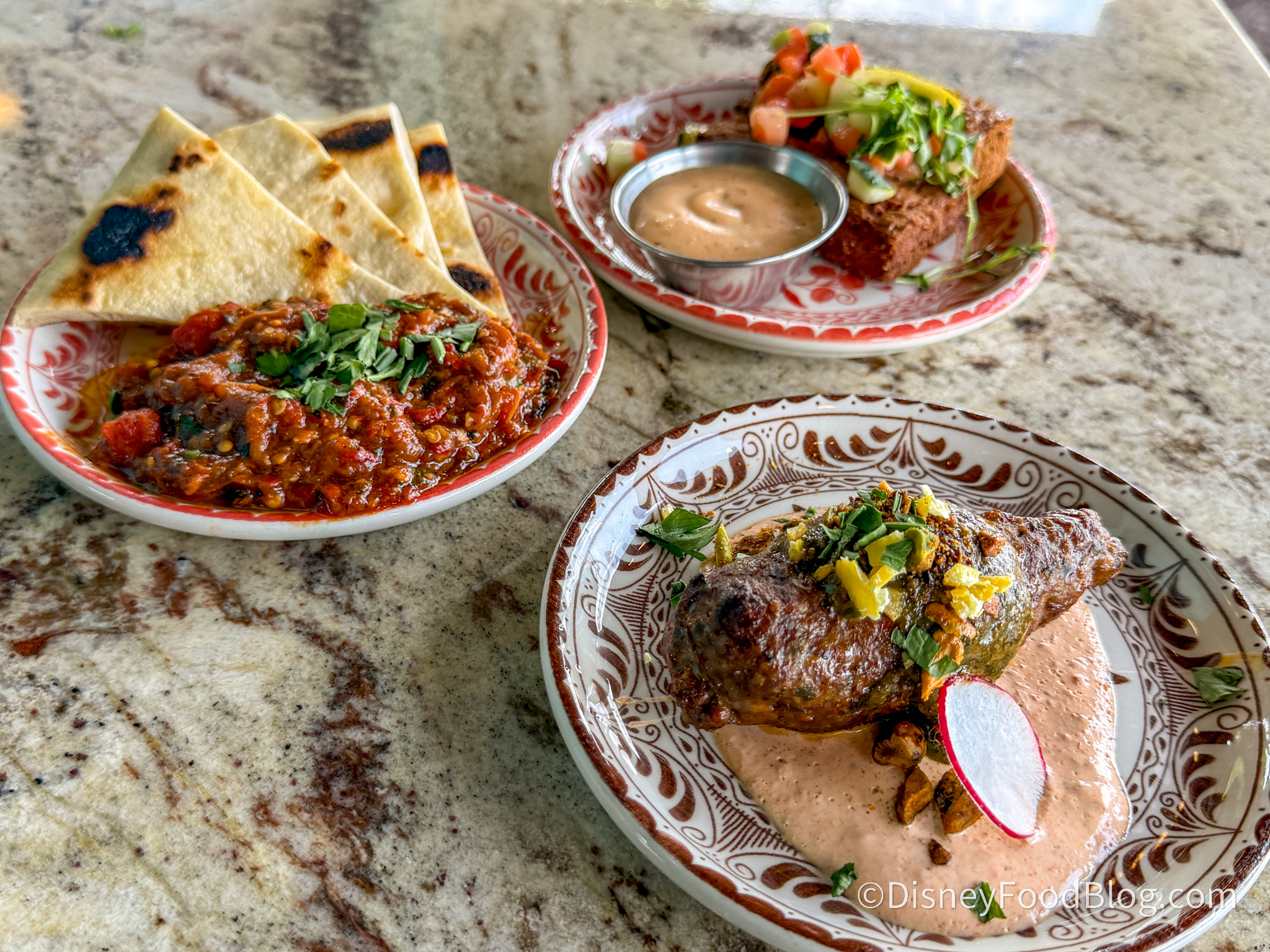 Connected to the name, the dishes are filled with spices, but are not always spicy! They use bright, fresh flavors and are lighter than other theme park dining locations. They also have specialty beverages, wine, sangria, beer, and cider.