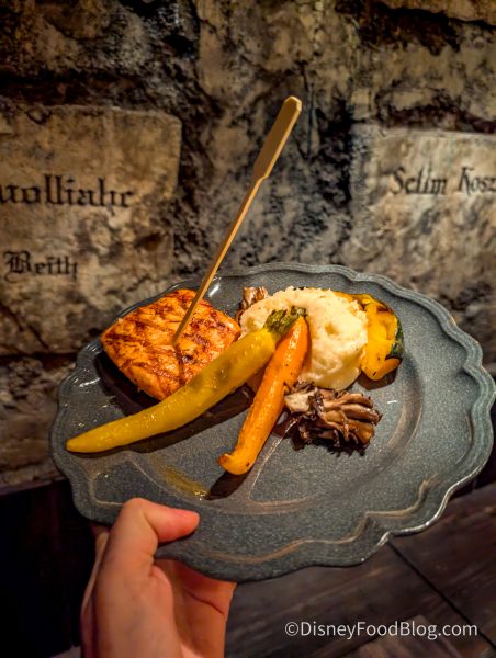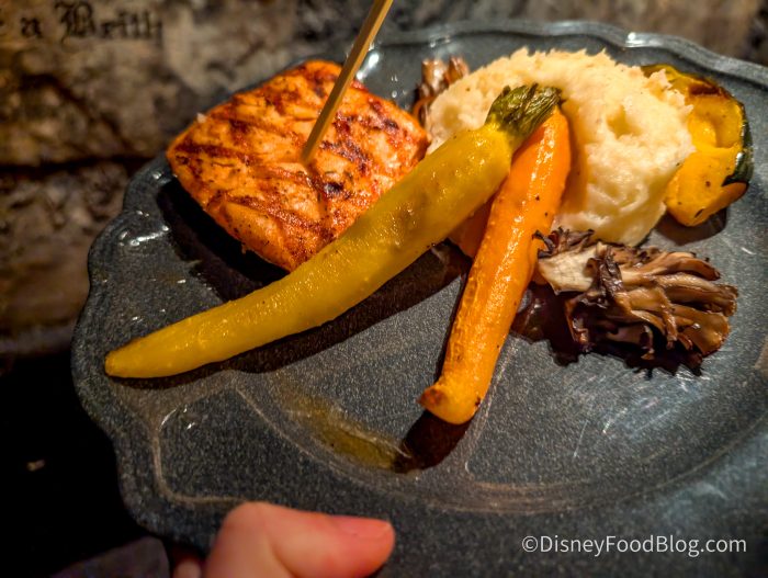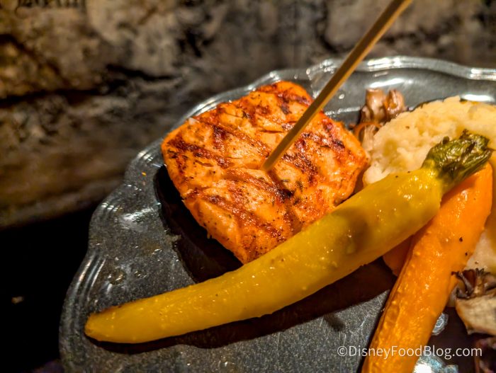 What were the stars of the dish? The potatoes and veggies! The potatoes were creamy but not overly decadent, bringing a lighter feeling to the dish. The root vegetables were cooked well and seasoned beautifully. We loved how this dish was filling, but we didn’t feel stuffed at the end. Overall, it was a lighter dish with classic elements done well. We’re definitely having the salmon again because finding filling and lighter dishes in a theme park is not an easy feat.