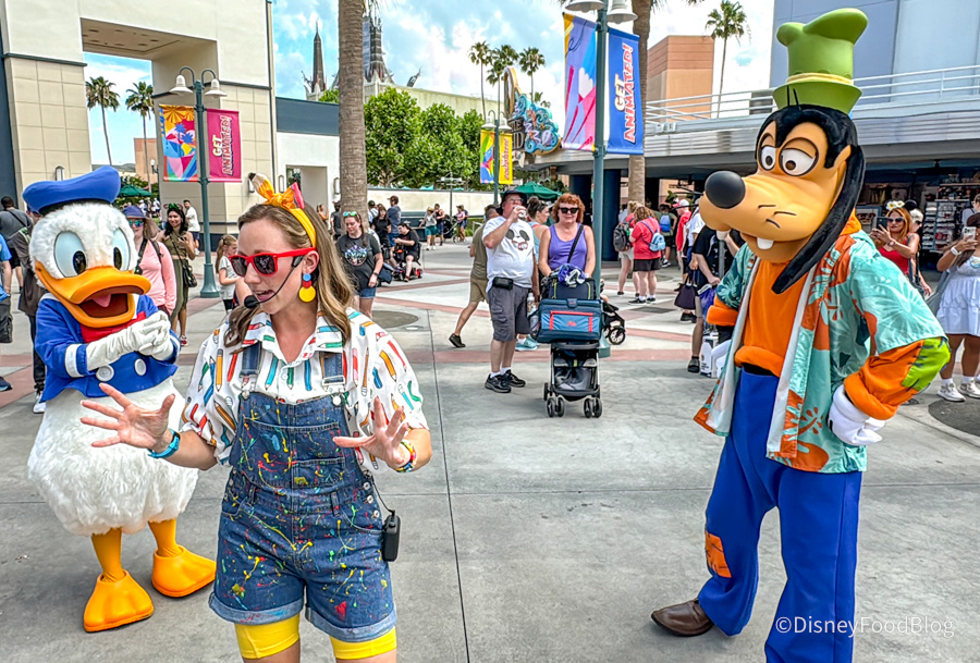 It’s time to GET ANIMATED at Hollywood Studios! Magicians, jump rope extraordinaires, characters, and more are hanging out in Animation Courtyard waiting to entertain you! We spotted Donald and Goofy…