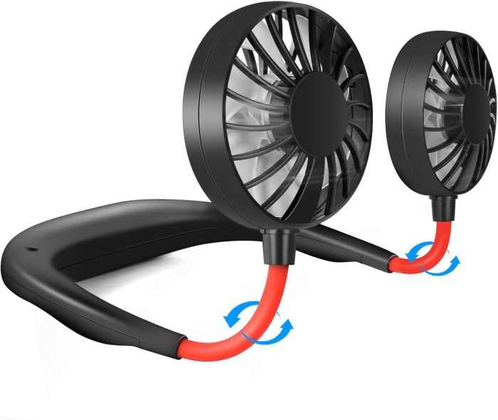 Amazon has a portable neck fan that you can nab even cheaper than at ALDI if you catch it on sale. This neck fan has three speeds, is adjustable, and has 360-degree rotation so you can point the air where you feel you need it most.