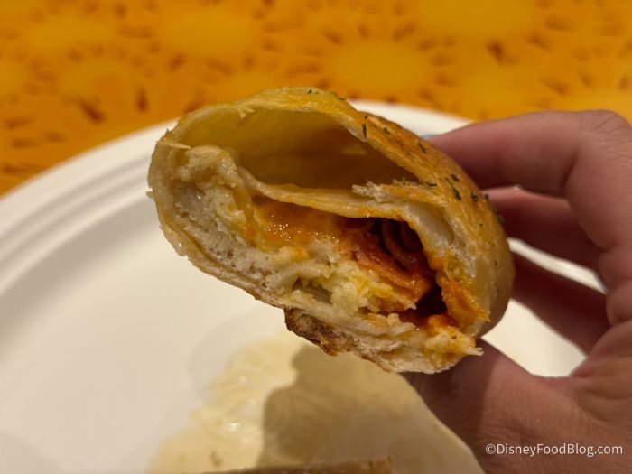 We also grabbed the Pepperoni Pizza Roll for $11.79. This is made just as it sounds and comes with a side of your choice. For this visit, we opted for Pasta Salad, but you could also get a bag of chips.