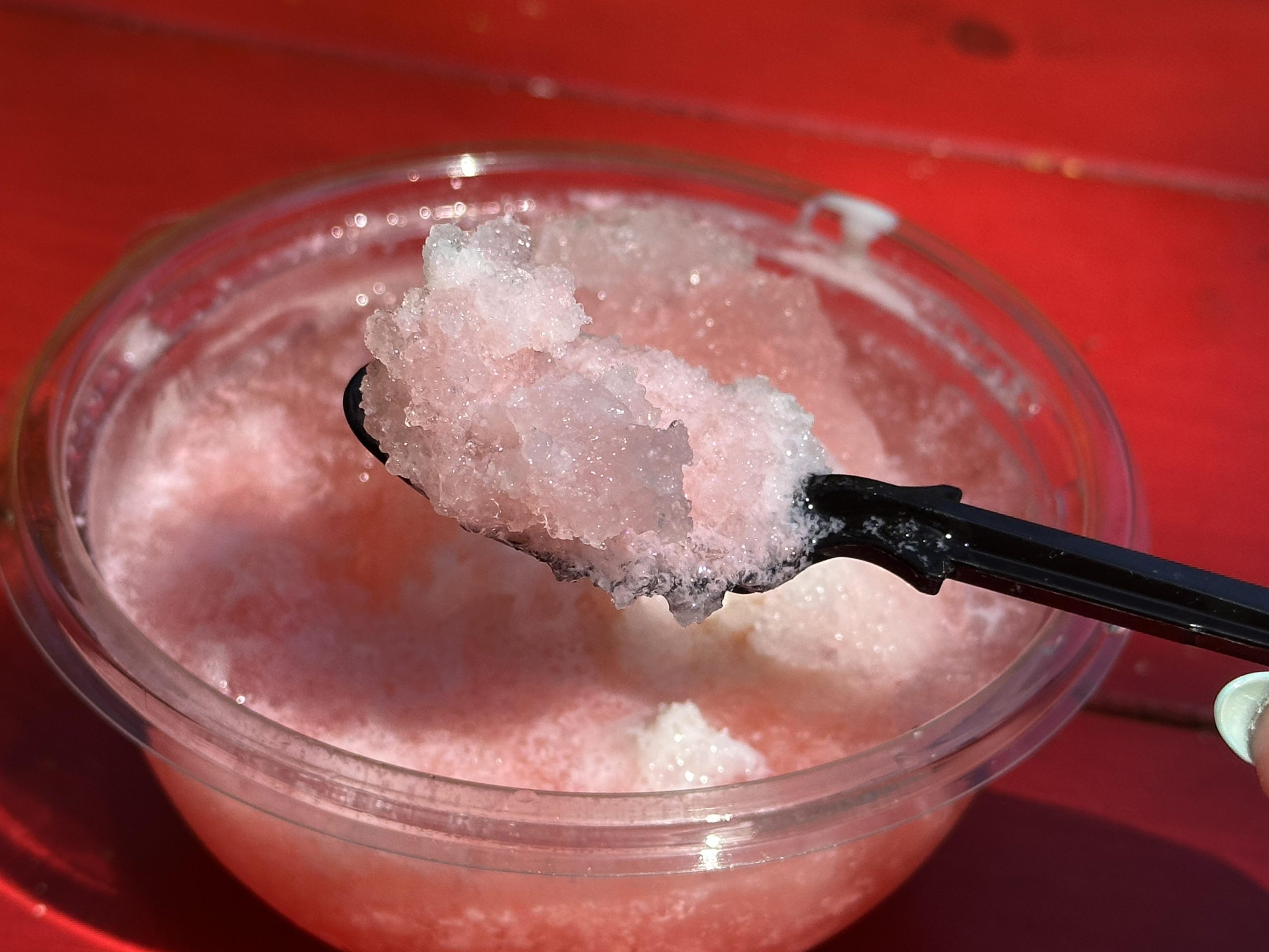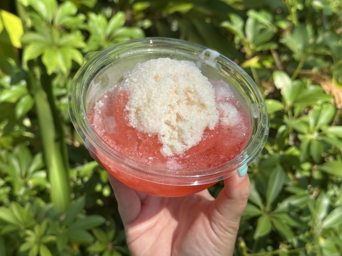 Over at Caravan Road in the Asia area of Animal Kingdom, we tried two treats. We started with the Kakigori for $5.99.