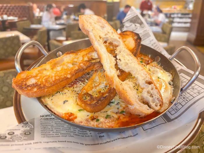 Note that breakfast at Trattoria al Forno was once a character breakfast, the Bon Voyage Adventure Breakfast, which featured Disney couples like Rapunzel and Flynn Rider and Ariel and Eric. However, the character dining experience here has been closed since 2020. So what you get now is just breakfast sans characters.