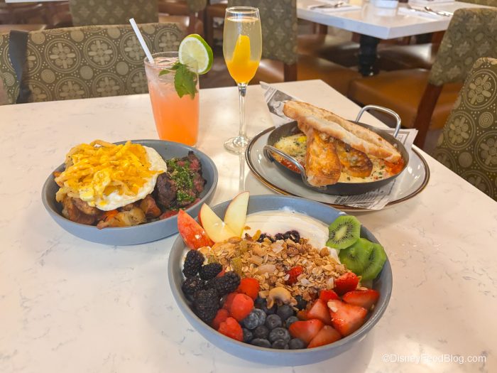 We’re still not sure why Disney decided not to bring back the character dining breakfast here (although there’s one in the area at Cape May Cafe), but breakfast at Trattoria al Forno is still a pretty solid choice if you’re looking for a table service breakfast with hearty choices.
