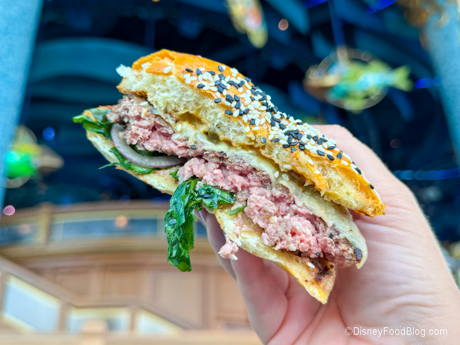 You see, we’re on a mission. That mission is to try ALL the food we can in Universal Orlando’s theme park, and there are still some things we haven’t managed to get to yet (our stomachs are only so big, y’all). So we’re heading back to Atlantic, which you’ll find in Celestial Park, to try this burger that we’ve heard a lot of good things about. Join us as we take a bite or two and give you our honest thoughts.
