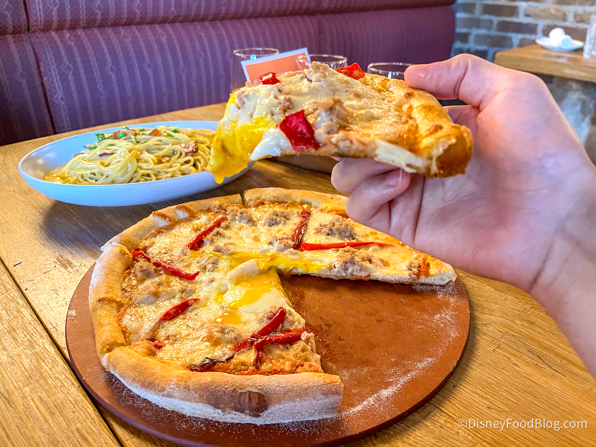 First up, we grabbed the Breakfast Pizza for $17! This is made with Fennel Sausage, Roasted Red Peppers, Mozzarella and a sunny side up Egg.