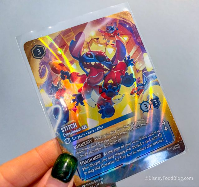 But really, ALL the Lorcana cards are STUNNING. That’s one of the reasons why I love this game so much. The artwork is phenomenal and depicts several of my favorite Disney characters inside magical scenarios and new storylines that I can’t help but get swept up in.