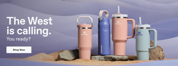 Looking for a new water bottle this summer to stay hydrated? The Out West Stanley Collection has got you covered with FOUR different designs! You’ve got a 30-oz with a flip straw, as well as a 24-oz with a flip straw. But if you prefer your straw to be available at all times, there’s also a 30-oz and 40-oz option of the Quencher design available. Again, we expect these to be gone QUICK!