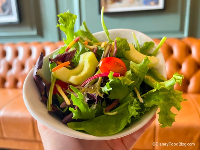 The salad included tomatoes, spring mix, and cucumber with ranch dressing. This is a nice starter, but it’s basic. The dressing is creamy and we really got a lot of green onion flavor.