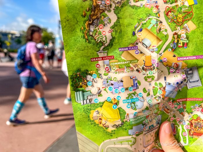 Our first stop of the day was for a map at the front of the park, and sure enough, Disney has already changed its map to reflect the closure. Now, you see Grand Avenue listed, but there is no Muppets Courtyard listed beyond it — it’s all just greenery.