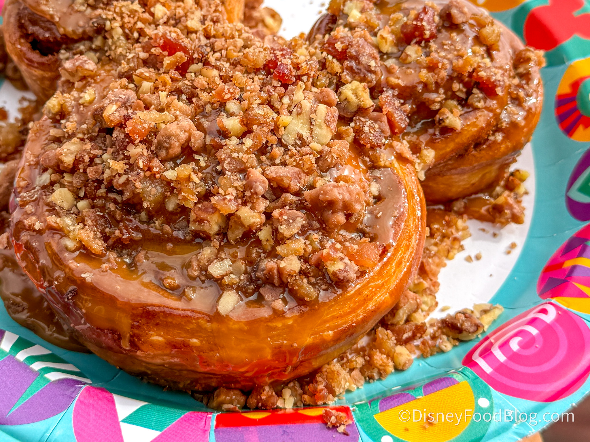 Meet the Mickey-shaped Bacon-Pecan Caramel Cinnamon Roll for $8.49 at Westward Ho, a snack stand in Frontierland.