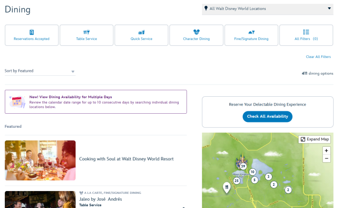 You also know that getting some of those reservations is HARD, but a new update to the Disney World and Disneyland websites is trying to make that a little easier by letting you search for an expanded date range and additional filters to help you find the perfect meal.