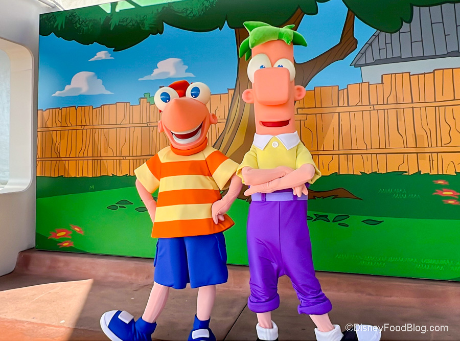Again, you’ll want to keep your eyes peeled for the wandering character interactions at Early Entry. Phineas and Ferb from the hit TV show are also meeting guests through June! You can find them at the front of the park near Spaceship Earth.