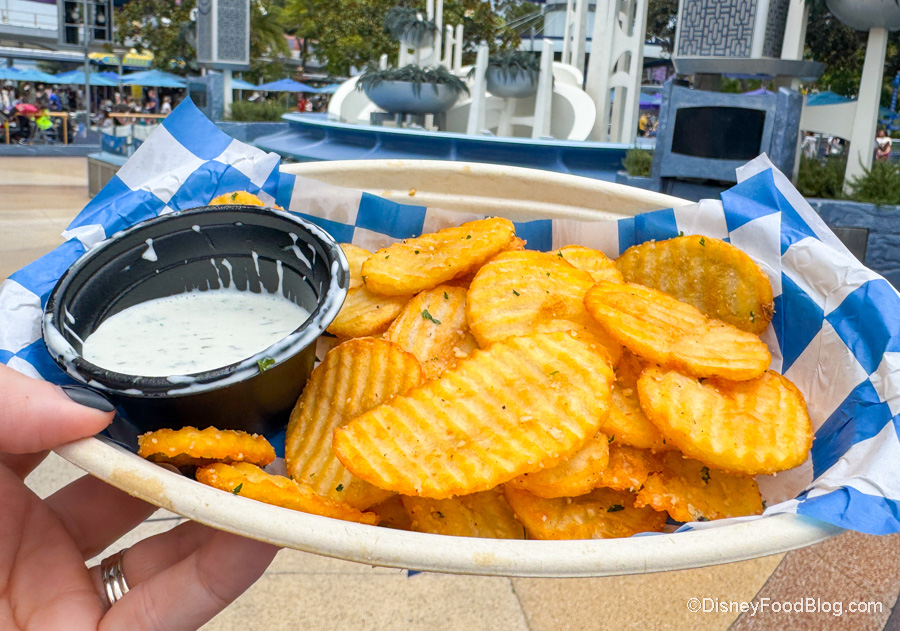 Because you see, the flavor is SO good. The garlic, parmesan, and parsley flavors are just a wonderful combination…and that ranch? Well, that is the best ranch on property. How could you do this to us, Disney? Now, we are willing to come back and try these again, just in case we got a bad batch or something, because these certainly have a lot of potential.