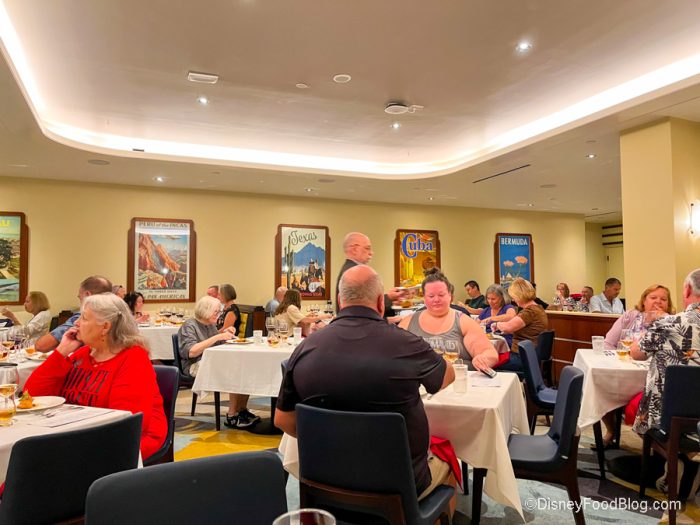 Like a lot of Disney World, Maria & Enzo’s comes with a story. The idea is that the restaurant, which is Italian, is in an airline terminal that was abandoned in the 1930s, so if you visit this restaurant, be sure to check out the fun retro travel posters on the walls.