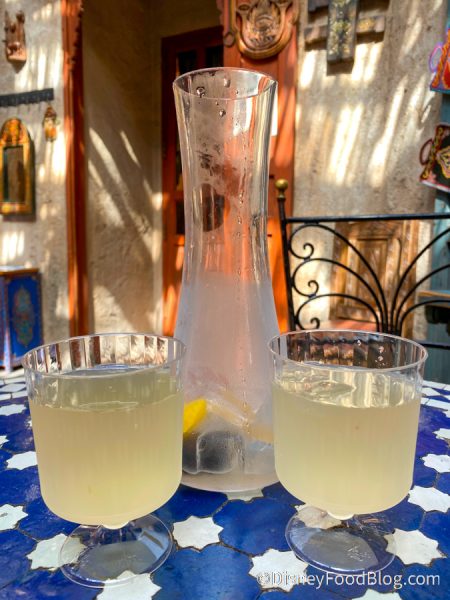 Tucked away deep into the Morocco Pavilion, you’ll find the Morocco Snack and Beverage Cart! This tiny and fairly unassuming little bar packs quite the punch… and by punch, we mean sangria! You’ll find both red and white sangria for sale here, as well as sangria for two. So you’ll pay one price but get two cups so you and a friend can go halfsies. The sangria itself is sweet without being overly so, and also has a bit of spice and tartness from the fruits that are also served in the cup.