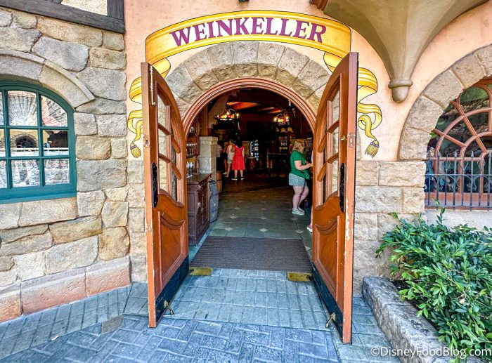 If you walk into Weinkeller — over in the Germany Pavilion — too quickly, you might think it’s just a retail shop selling bottles of wine, chocolates, cookbooks, and other German-themed souvenirs. But if you take a closer look, you’ll spot a bar in the back of the shop where you can actually order wine by the glass.