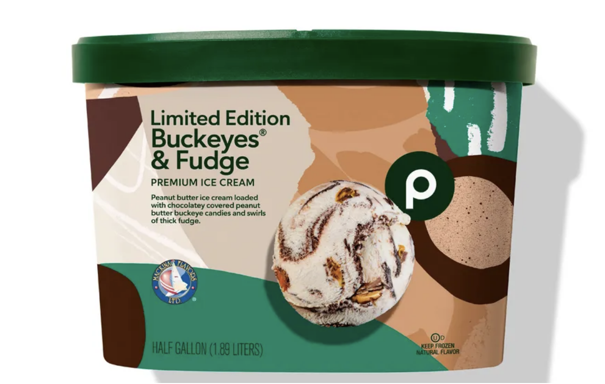 - Buckeyes & Fudge (Peanut butter ice cream loaded with chocolatey covered peanut butter buckeye candies and swirls of thick fudge.)