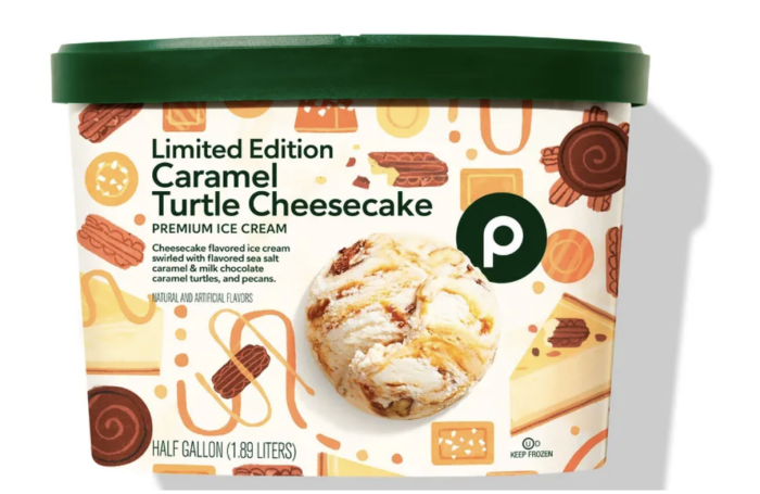 - Caramel Turtle Cheesecake (Cheesecake-flavored ice cream swirled with flavored sea salt caramel & milk chocolate caramel turtles, and pecans.)