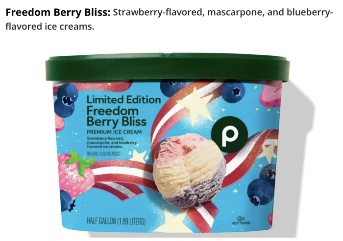 - Freedom Berry Bliss (Strawberry-flavored, mascarpone, and blueberry-flavored ice creams.)