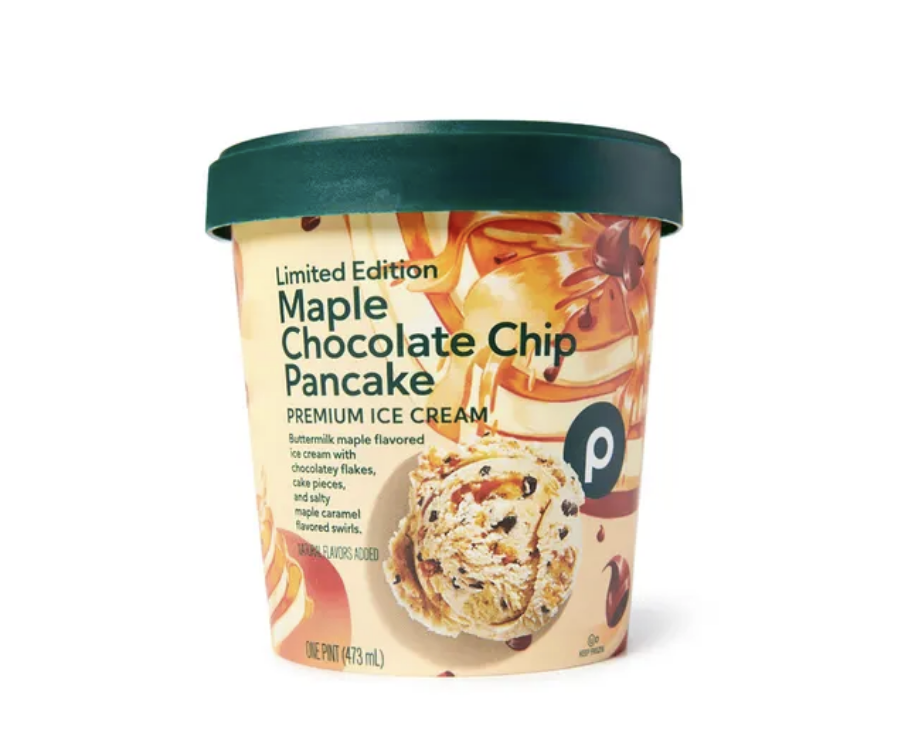 - Maple Chocolate Chip Pancake (Buttermilk maple-flavored ice cream with chocolatey flakes, cake pieces and salty maple caramel-flavored swirls.)