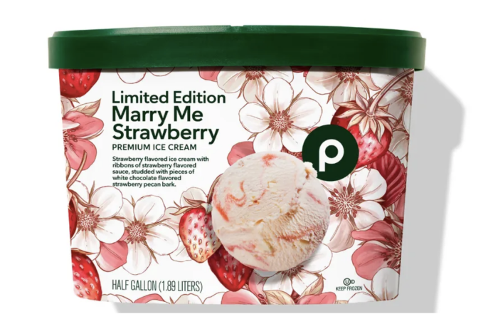 - Marry Me Strawberry (Strawberry-flavored ice cream with ribbons of strawberry-flavored sauce, studded with pieces of white chocolate-flavored strawberry pecan bark.)