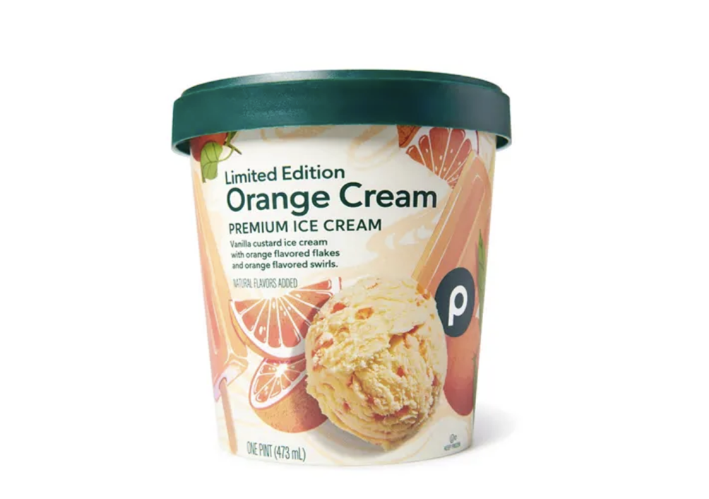 - Orange Cream (Vanilla custard ice cream with orange-flavored flakes and orange-flavored swirls.)