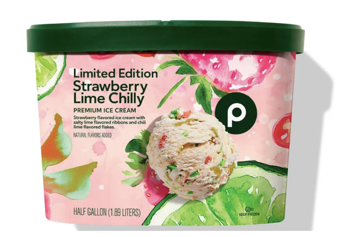- Strawberry Lime Chilly (Strawberry-flavored ice cream with salty lime-flavored ribbons and chili lime-flavored flakes.)