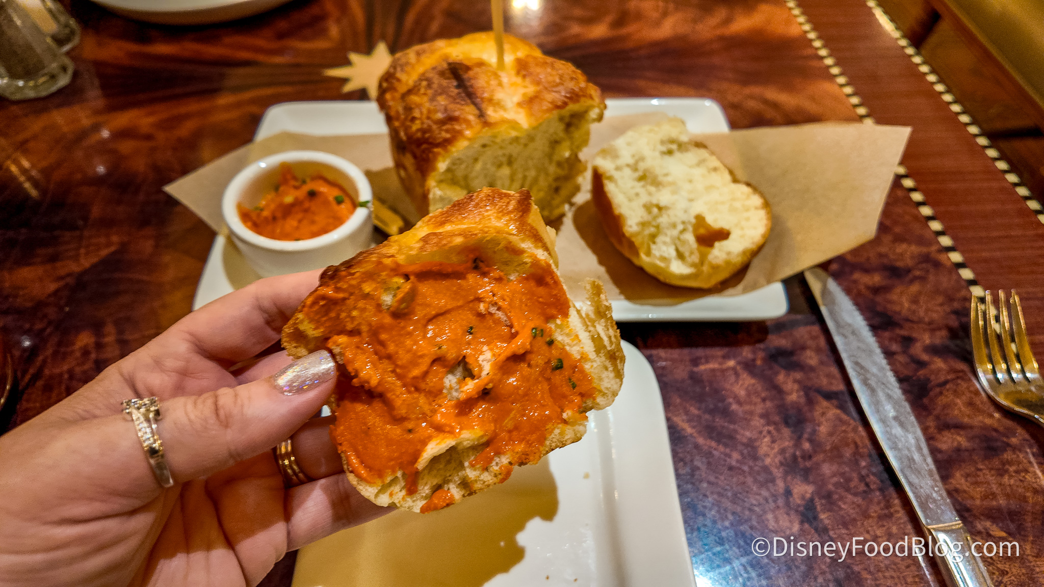 First up, we tried the Cheddar Parker House Rolls with Calabrian Chili-Pine Nut Romesco Butter.