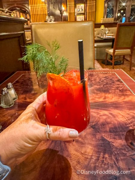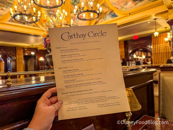 The lunch menu here currently runs on a two-course prix fixe system. You pick a starter and an entrée. There’s also a full drink menu (hello, fancy cocktails), and one house dessert available for an extra charge. If you’re used to turkey legs and popcorn buckets, this is a serious shift in gears.