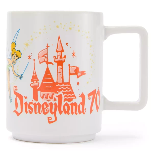 We got another Disneyland 70th mug for you — check out this Tinker Bell and Sleeping Beauty Castle Disneyland 70th Anniversary Mug! Tinker Bell is soaring above the castle, igniting fireworks and pixie dust. The mug features vintage art styling from the Disney vaults. This nostalgic trip back to the early days of The Happiest Place on Earth commemorates the 70th Anniversary.