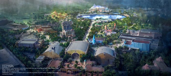 An aerial look at the future of Walt Disney Studios Park, to be renamed to Disney Adventure World in 2026.