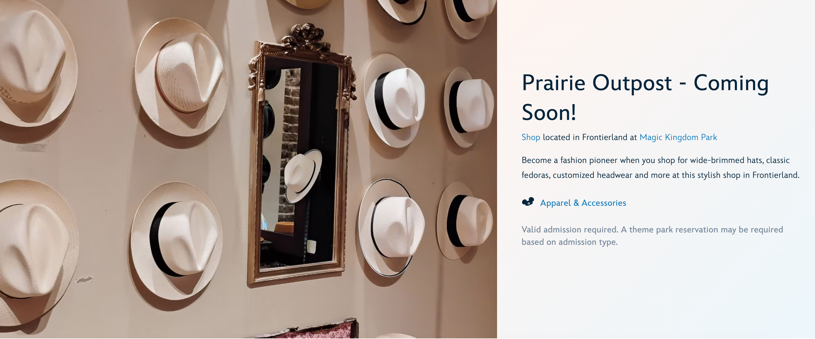 Prairie Outpost is opening in Frontierland at Magic Kingdom on June 30th, 2025. This “new” merchandise location invites you to shop for wide-brimmed hats, classic fedoras, customized headwear, and more from Chapel Hats at this stylish shop in Frontierland.