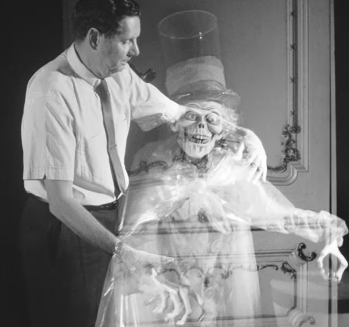 The Hatbox Ghost is arguably the most famous single animatronic in Disney history, mainly due to its urban legend status. The figure, which features an effect where the character’s head would “disappear” and then “reappear” inside the hatbox he was holding, had been very briefly included in the original Disneyland Haunted Mansion’s attic during soft opening previews as well as some marketing materials. However, by the time the attraction opened to the general public, the figure was nowhere to be seen.
