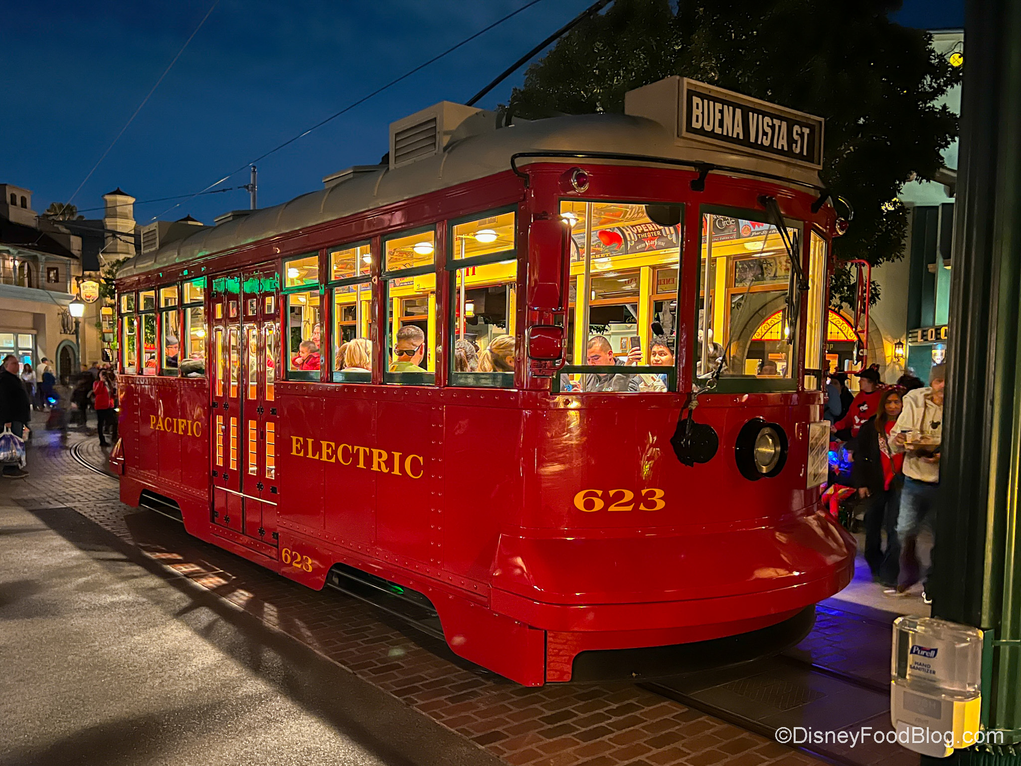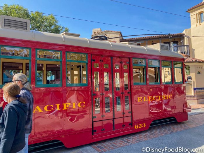 While the car — styled after the Los Angeles Pacific Electric trolley cars of the early-to-mid 1900s — still sits at the front of the park, it is out of service, so don’t expect rides up and down Buena Vista Street, Hollywood Boulevard, and Sunset Boulevard.