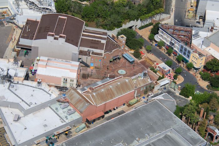 We also got some new aerial photos of what the former Muppets Courtyard looks like now as Disney begins building the new land in its space.