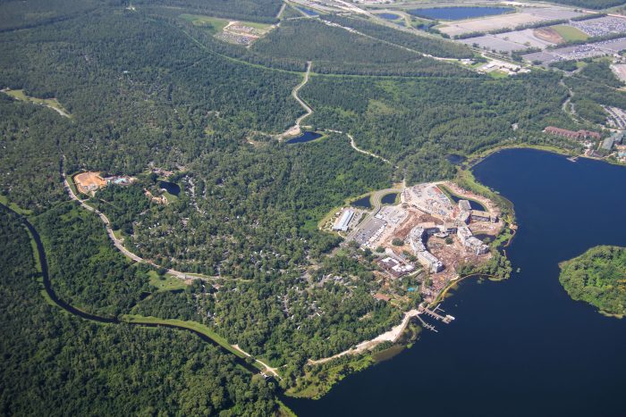 We’ve been keeping a close eye on the progress at this new Deluxe hotel and can’t wait for it to officially open. Lakeshore Lodge will be “inspired by the majesty of nature and its enduring influence on Disney artists.” Thanks to newly released photos, we now have a new aerial view of how things are progressing.