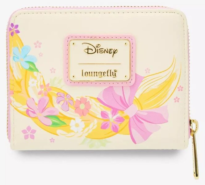 If you’re the type who likes your bag and wallet to coordinate (no judgment—we fully support this), there’s a matching wallet that’s just as magical. One side features Pascal chilling on Rapunzel’s flowing braid with a soft floral background, while the other side showcases her hair in full dramatic form.