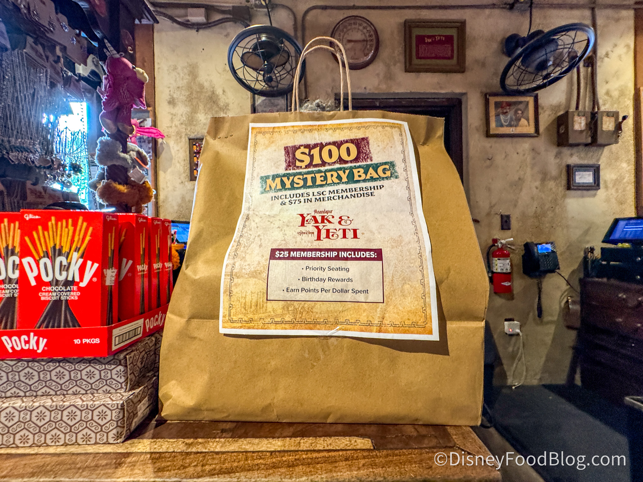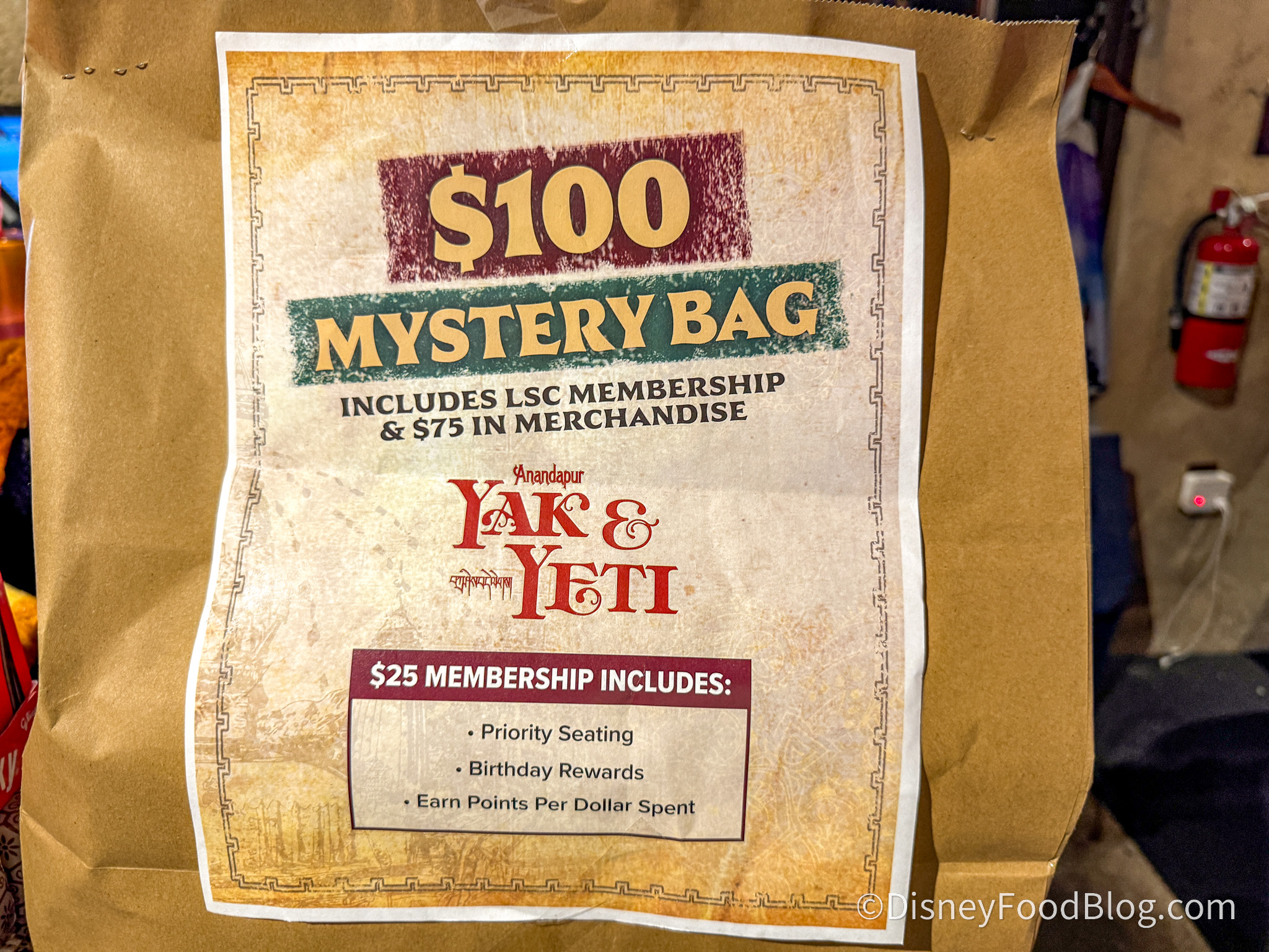 Currently, at Yak and Yeti, one of our favorite spots in Animal Kingdom, there is a special offer available. There are $100 mystery bags that include the Landry’s Club Membership plus $75 in merchandise! You can grab the bags at Bhaktapur Market.