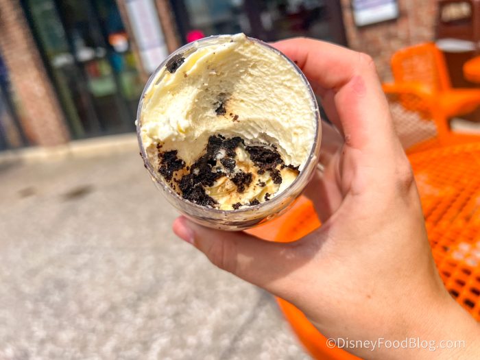 One element we were amazed by was how it didn’t melt! Maybe we’re just used to ice cream in the Florida heat, but most cool, refreshing desserts don’t last long in the sunshine. This held up well, and because it was served in a cup, it was easy to eat. You could also walk around Disney Springs eating it, which rarely happens with desserts in Orlando! Whether you choose to share or keep all of yourself, we thought the portion size was lovely.