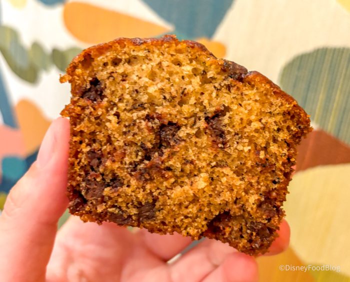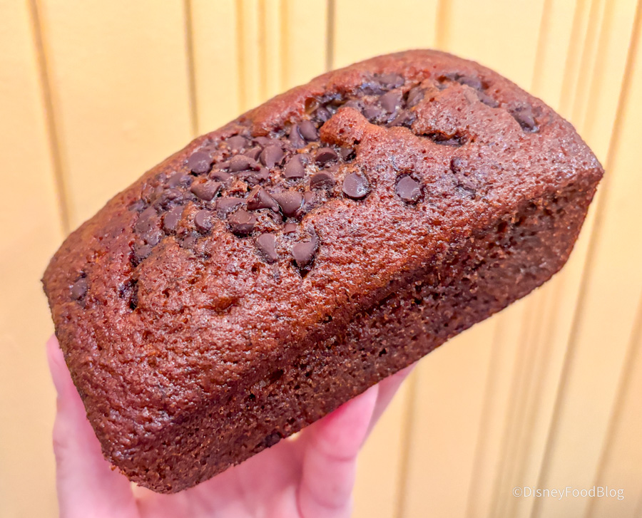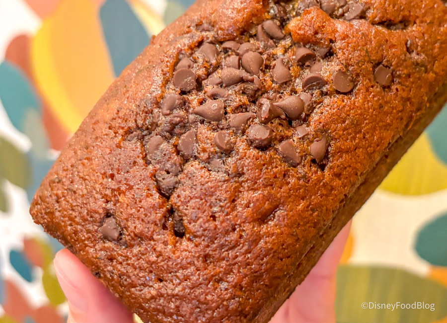 We stopped by The Artist’s Palette at Disney’s Saratoga Springs Resort to try the NEW Banana Chocolate Chip Bread for $7.29. Sounds pretty self-explanatory to us!
