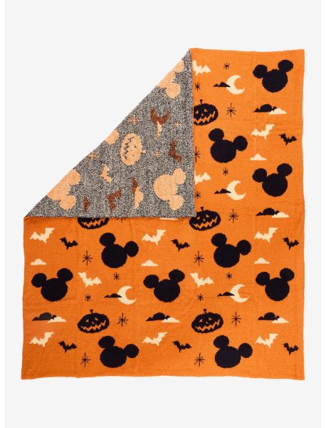 Available for pre-order, the Mickey Mouse Halloween Icons Feather Knit Throw is a BoxLunch exclusive that comes in a 50″ W x 60″ H size. This machine-washable throw features Mickey ears as well as bats, pumpkins, and crescent moons amid an orange backdrop.