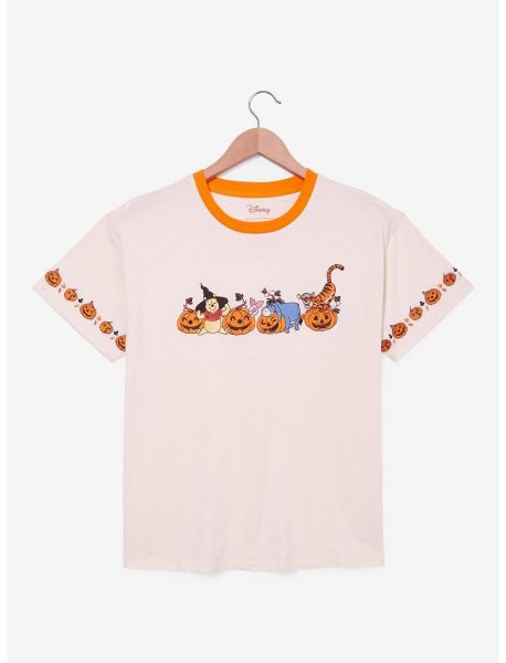 Another BoxLunch exclusive, the Winnie the Pooh Jack-o-Lantern Pooh Bear & Friends Women’s T-Shirt is available in 7 different sizes. This cotton jersey features an embroidered design of Pooh and his friends with jack-o-lanterns across the front, and sleeves with matching pumpkins. Adorable!