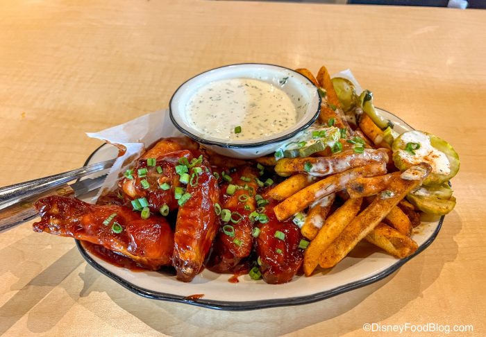 First up, we grabbed the Texan BBQ Wings with Hot Fries for $28. This was six wings with sweet BBQ and scallions served with house buttermilk-dill.