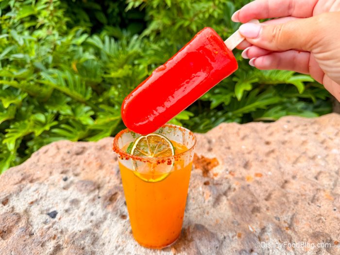 The mango flavor has that bit of tequila flavor coming through, and then the strawberry popsicle kind of melts into the mango flavor, and it’s actually quite nice and refreshing. Yeah, it’s basically a strawberry mango margarita, but putting it together this way makes it fun. It’s also something that EVERYONE was asking us about when we were carrying it around EPCOT. So new trendy drink alert, y’all!