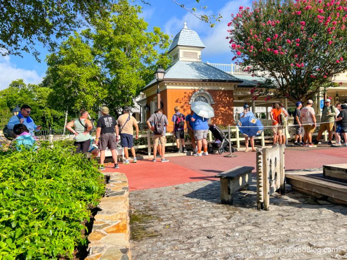 Rivers of America, Tom Sawyer Island, and the Liberty Square Riverboat are all going away to make way for a brand-new Cars expansion, Piston Peak, in Frontierland. This part of Magic Kingdom is set to close tomorrow, July 7th, which means Magic Kingdom is about to look a LOT different. So we visited Magic Kingdom this morning to see what the last day at these attractions looks like. When we arrived in the park, folks were already lined up to ride Liberty Square Riverboat one final time.