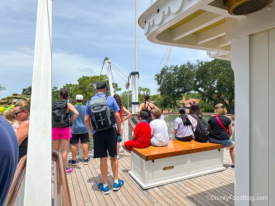 If you want to get on the Riverboat one final time, the last official ride tonight is at 8:30 PM (it’s usually 8, but there’s a final ride scheduled for tonight at 8:30 PM). Note that you will need to have a wristband (obtained from a Cast Member), though, to hop on that final ride. Cast Members were distributing these wristbands at 10 AM this morning, and there are only a limited number available.